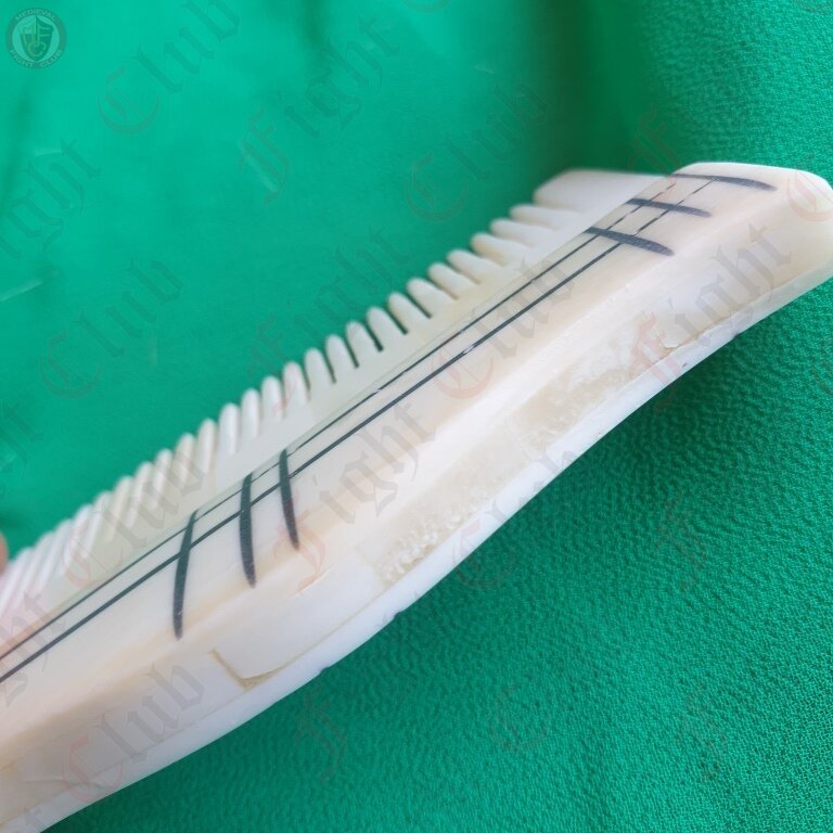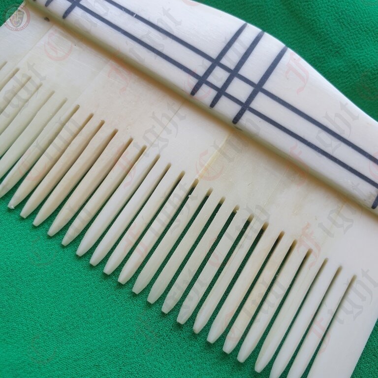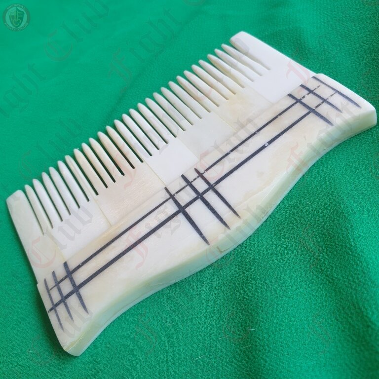 This hand made comb is made of polished bone sections, and features unique etchings. This comb could either enhance your early medieval costume, or even in everyday grooming. We understand that as an organic comb and especially of this shape, they are suitable for minor modification to make them ideal for your early medieval soft kit.