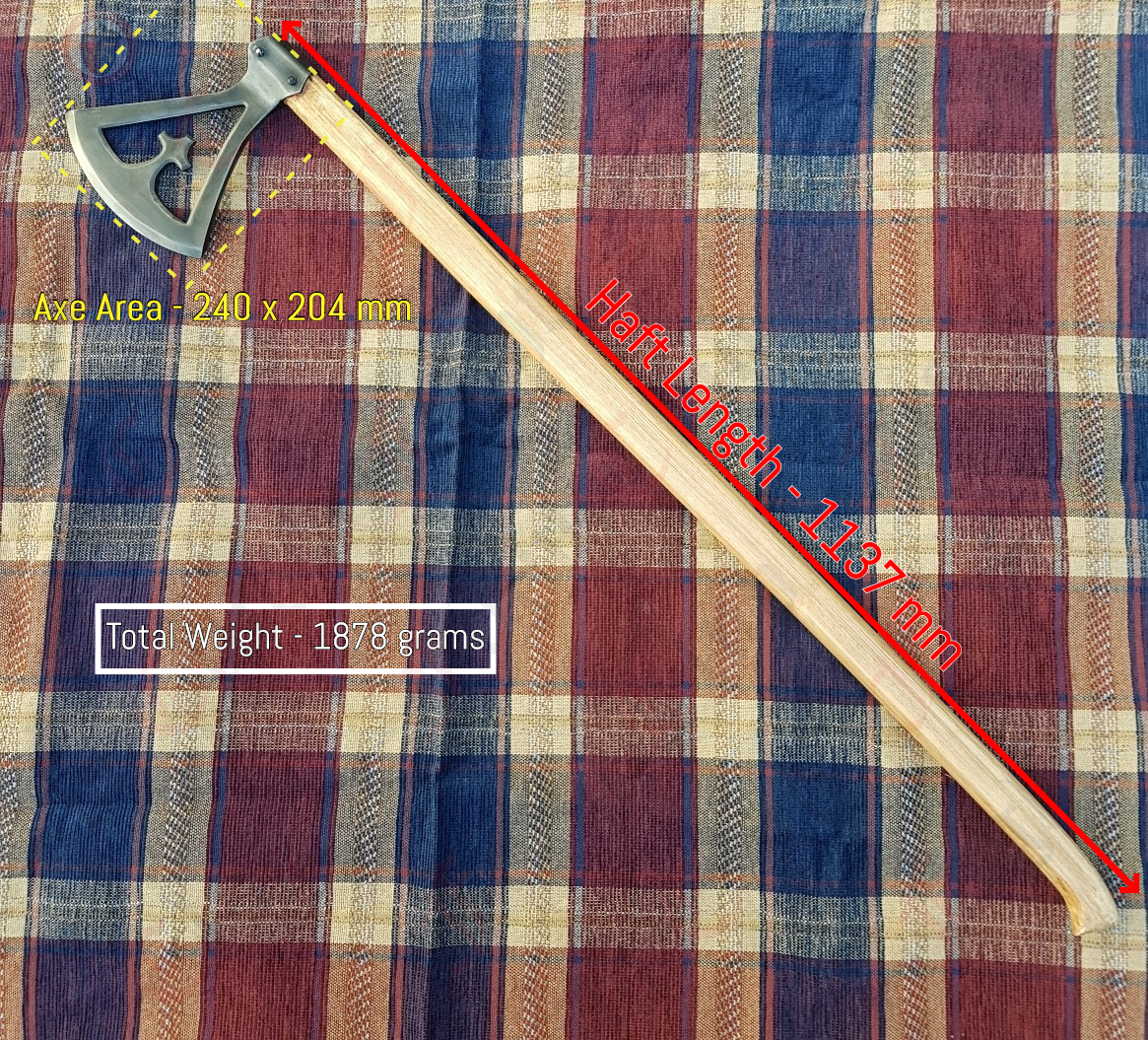 This Viking Axe is a true display of Viking warriors' spirit. The head of this steel axe features a curved blade with a cross shape cut out, adding a hint of Anglo Saxon culture. The axe head is mounted on a full length wooden shaft. The 10th Century Gotland Viking Cross Axe is a functional display piece, adding an authentic post Christendom Scandinavian appeal.