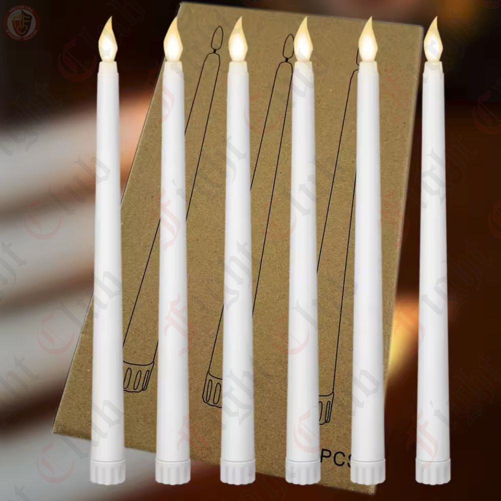 Decorate your home or campsite with this set of 6 realistic LED candles that will add ambience and atmosphere. Forget about leaking wax, smoke or fires as each candle is battery operated by two AAAs (not included). Choose between flicker mode (to emulate a real candle) or a constant on mode for solid light, as well as a 2, 4, 6, or 8 hour timer switch to schedule a time to turn out the lights.