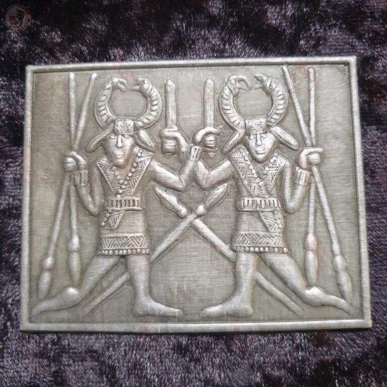 This is a plate reconstruction from the Sutton Hoo helmet. This decorated Anglo-Saxon helmet was discovered during the 1939 excavation of the Sutton Hoo ship-burial. Buried around 625 AD. It is believed to have been the helmet of King Raedwald.