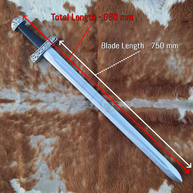 A classic Norseman's sword, perfect for any Viking warriors ready for a fight. Styled with Celtic swirls and a knuckle pommel, the sword a great length for single handed use.