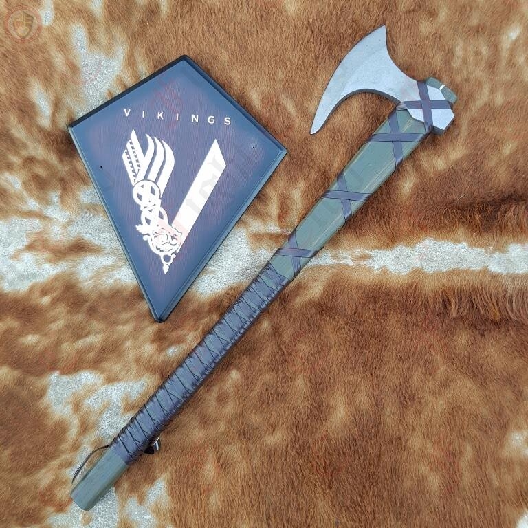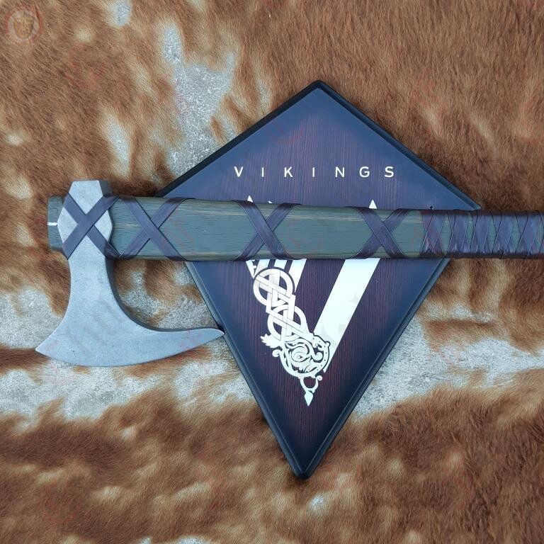 The weapon favored by Ragnar Lothbrok in the history channel show "Vikings". This axe was essential in Ragnar's rise from lowly farmer to Viking King. Guided by Oden and believing that his path was destined for greatness, Ragnar and his warriors raid and plunder across England and beyond. This axe was used in all his raids, and was the key to his victory over Earl Haraldson at the end of Season 1. Ragnar's favored axe is rarely far from his side.
