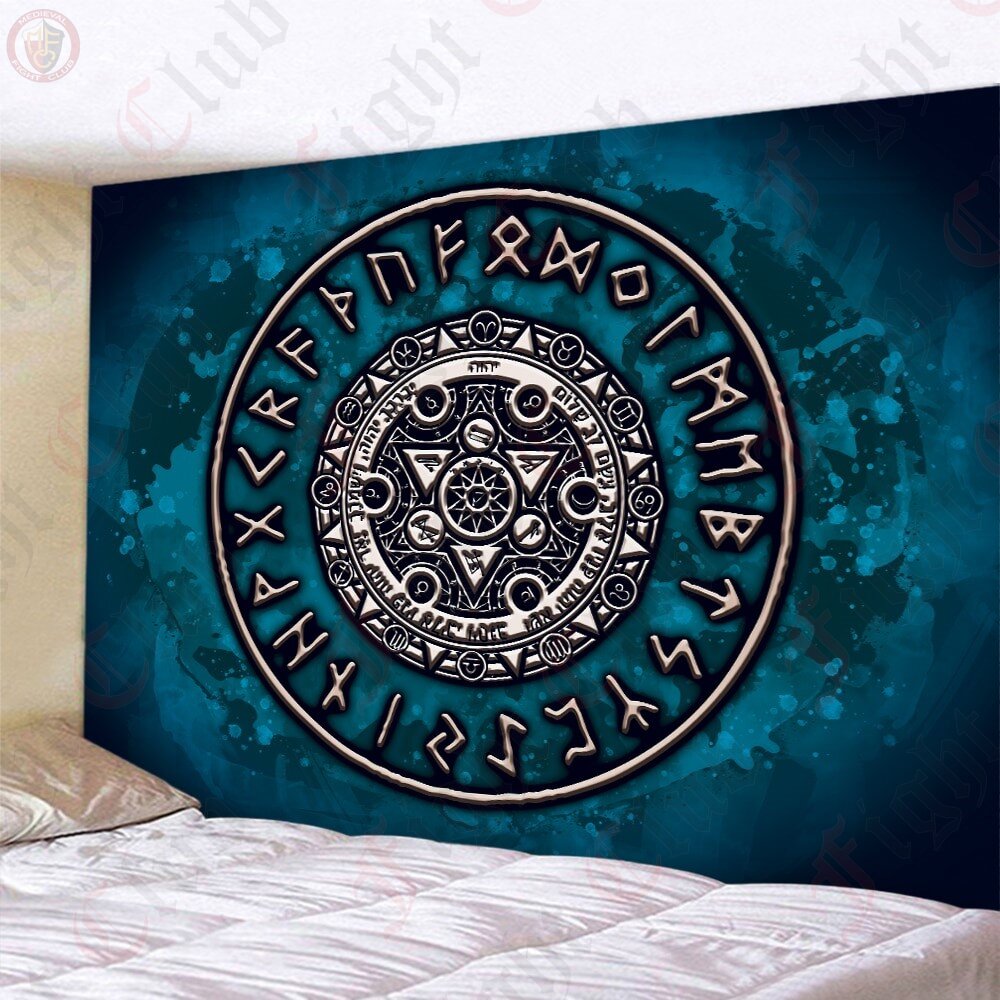 Let your true spirit free with this wall hanging depicting the twelve signs of the zodiac surrounded by viking runes.